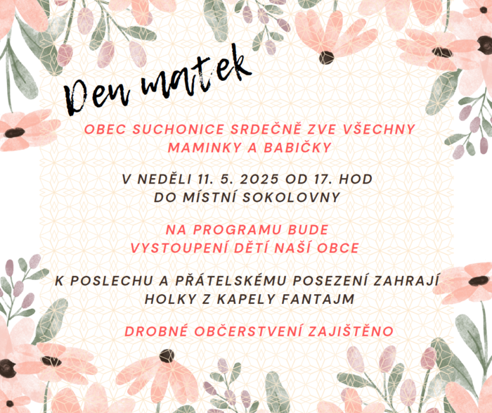 přijměte opět po roce pozvání na Den matek, který se bude konat v neděli 11. května od 17 hodin v místní sokolovně.
