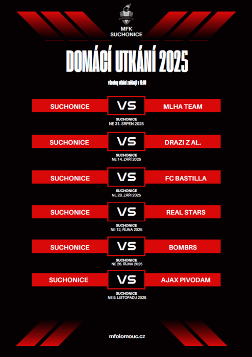 Máme pro Vás rozpis domácích utkání MFK Suchonice pro podzim 2025.