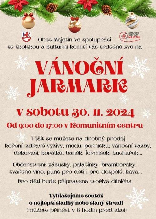Obec Majetín vás zve na Vánoční jarmark, který se uskuteční v sobotu 30. listopadu 9 - 17h v Komunitním centru.