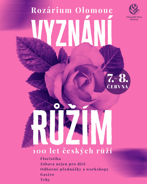 Rodinný festival Vyznání růžím 7. a 8. června v Rozáriu Olomouc. Floristické show, aktivity pro děti, kuchařská show herečky Markéty Hrubešové, trhy s květinami, workshopy, odborné přednášky a mnoho dalšího na Vás čeká na Vyznání růžím.